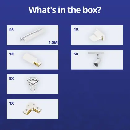 Beschrijving Bright Choice Complete Set 1-Fase Rail L 1,5 x 1,5 Meter Wit | incl. 5x Spot + GU10 2700K 3W Dimbaar + Eindkap, Voedingsconnector en L -Verbindingsstuk