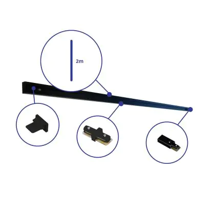 Beschrijving Bright Choice Rail Set 1-Fase 2 Meter Zwart | incl. Eindkap, Voedingsconnector en I-Verbindingsstuk