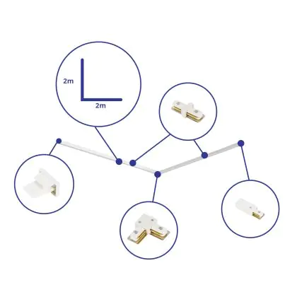 Beschrijving Bright Choice Rail Set 1-Fase L 2 x 2 Meter Wit | incl. Eindkap, Voedingsconnector en L -Verbindingsstuk