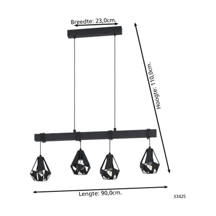 Eglo Hanglamp Townshend 7 Staal Hout Zwart | IP20 - Geschikt voor 4x E27