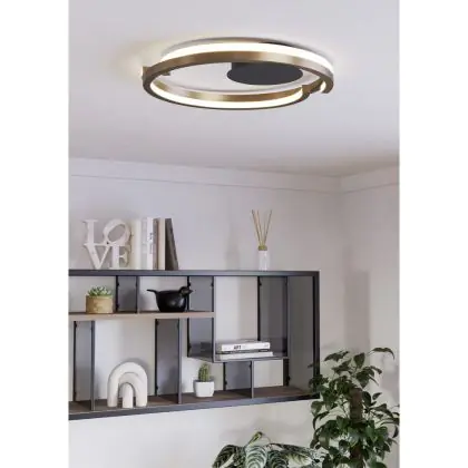 Beschrijving Eglo Plafondlamp Mezzomonte Aluminium Staal Brons Zwart 20W 1600lm - 827-865 Afstembaar Wit | IP20 - Dimbaar