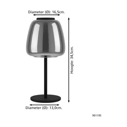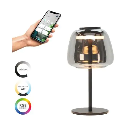 Beschrijving Eglo Tafellamp Alfero-Z Staal Zwart 7.7W 1000lm - 827-865 Afstembaar Wit + RGB | IP20 - Zigbee Dimbaar