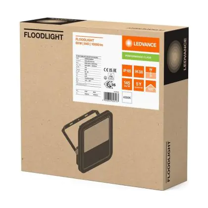 Beschrijving Ledvance LED Breedstraler Aluminium Zwart 69W 10000lm 100D - 840 Koel Wit | IP66 - Symmetrisch