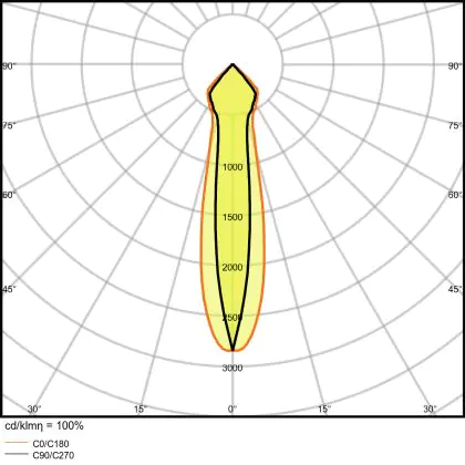 De lichtopbrengst en de gradenbundel spelen een grote rol. Zo geeft de lichtopbrengst van 3350 Lumen in combinatie met de 24° stralingshoek deze inbouwspot een specifieke toepassing. Kort samengevat is een lichtintensiteit van maximaal 400 Lumen ideaal voor accentverlichting, terwijl hogere waardes goed gebruikt kunnen worden als basisverlichting. Over het algemeen geldt: hoe breder de gradenbundel, hoe geschikter deze is door basisverlichting. Dit komt doordat het licht over een groter oppervlak wordt verspreid. Smallere gradenbundels (tot 40°) kunnen echter bij hoge plafonds ook goed tot hun recht komen als algemene verlichting.