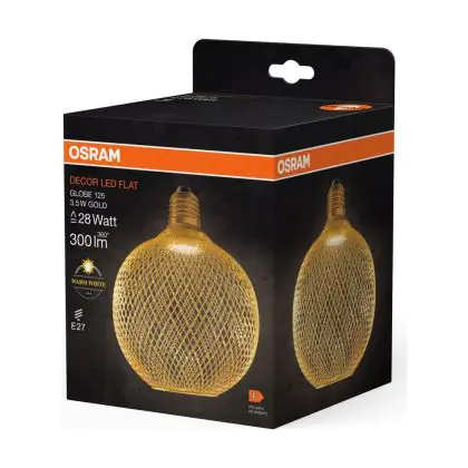 Beschrijving Osram Decor Plat Lamp In Metaal Behuizing LED E27 Globe Mat Goud 3.5W 300lm - 827 Zeer Warm Wit | Vervangt 25W