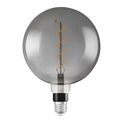 Beschrijving Osram Vintage 1906 LED E27 Globe Filament Smoke 200mm 5W 110lm - 818 Zeer Warm Wit | Vervangt 25W