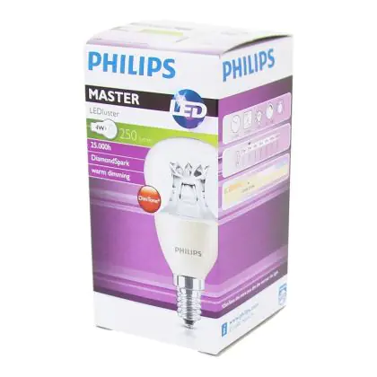 Beschrijving Philips MASTER LED Lustre E14 Kogel Kroon Helder 4W 250lm - 822-827 Dim To Warm | Dimbaar - Vervangt 25W