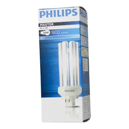 Het is bij de Philips PL-T 4P niet mogelijk om een ander wattage lamp in uw voorschakelapparaat gebruiken dan waarvoor deze bedoeld is. De Philips PL-T 26W 827 4P (MASTER) lamp heeft een lengte van 12,7 cm en heeft een GX24q-3 lampvoet, wat overeenkomt met 4 pinnen.