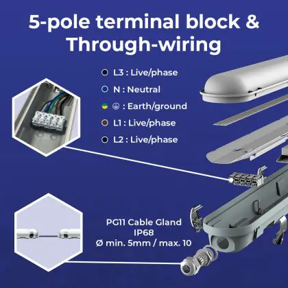 Beschrijving Voordeelpak 12x Noxion LED Waterdichte Montagebalk Poseidon V3.0 18-30W 2340-4200lm - 830-865 CCT | 120cm - Doorvoerbedrading (5x2.5mm2)