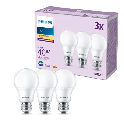 | Fabrikantnaam | Box 3 stuks - Philips LED Lamp Mat - 40 W - E27 - Warmwit licht | |