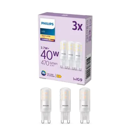 Beschrijving Voordeelpak 3x Philips LED Capsule G9 Mat 3.7W 470lm - 827 Zeer Warm Wit